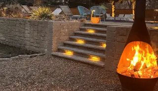 Evening-ready steps with integrated lighting for safety and ambiance.